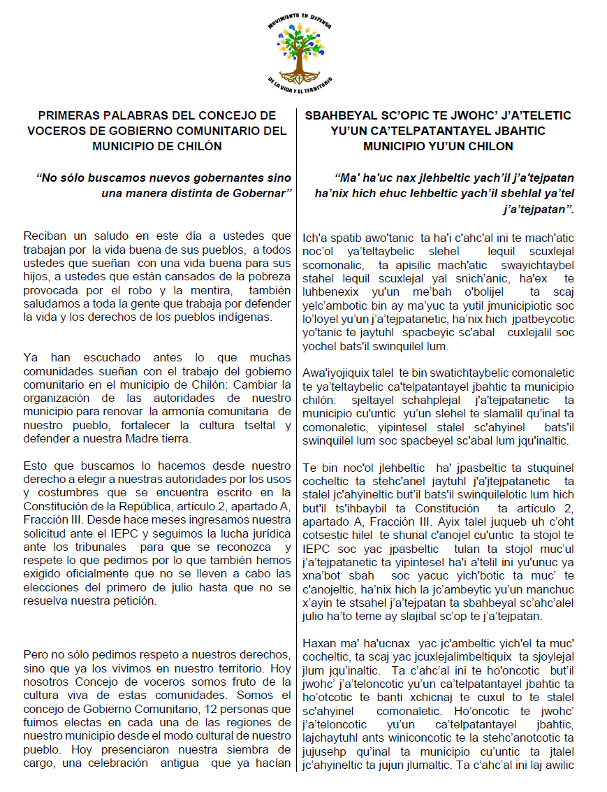 Los gobiernos comunitarios de Chilón y Sitalá